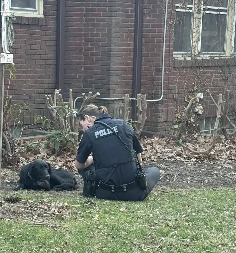 Deputy Keith Stokes tried again and again to rescue her, but she always slipped away. Then Officer Megan Feidler chose a different approach—she lowered herself to the ground, spoke in a calm, soothing voice, and waited. Slowly, the trembling dog surrendered, lying down beside her. With patience and care, Feidler slipped a leash gently around her neck.😞