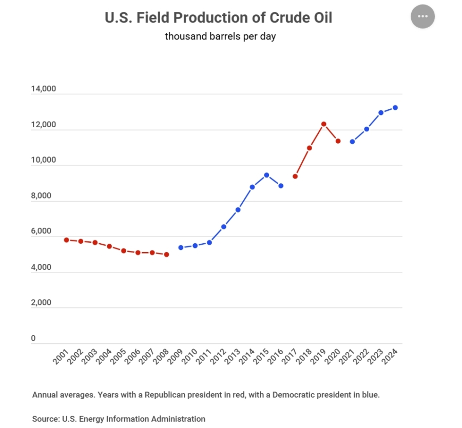 Contrary to Republican claims that Biden was hampering domestic energy output, crude oil production accelerated to new highs during his presidency.