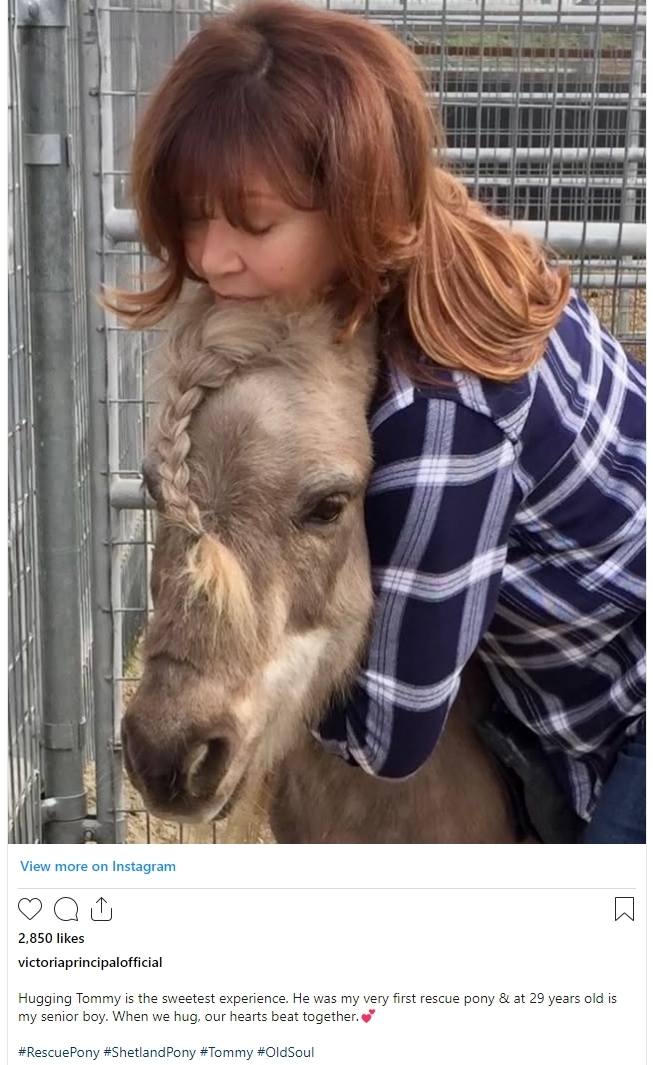 Earlier this fall, Principal spoke more about her work rescuing animals when she shared a sweet photo to her Instagram page as she held her rescue pony, Tommy, in her arms. With her beautiful brown hair draped on her shoulders, Principal didn’t look all that different from how she did during her days on TV in the ’80s.