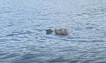 In the middle of the vast lake, Harley was swimming, but he wasn’t alone. At first, Ralph had no idea what the creature was, swimming beside him, but as got closer, the dog dad was in awe! Harley was accompanied by a tiny, fragile fawn struggling to stay afloat in the deep water. The fawn was exhausted, gasping for breath as she fought to keep her head above the surface. Harley, with his innate sense of compassion, had spotted the fawn in distress and couldn’t stand by while another living being needed help.
