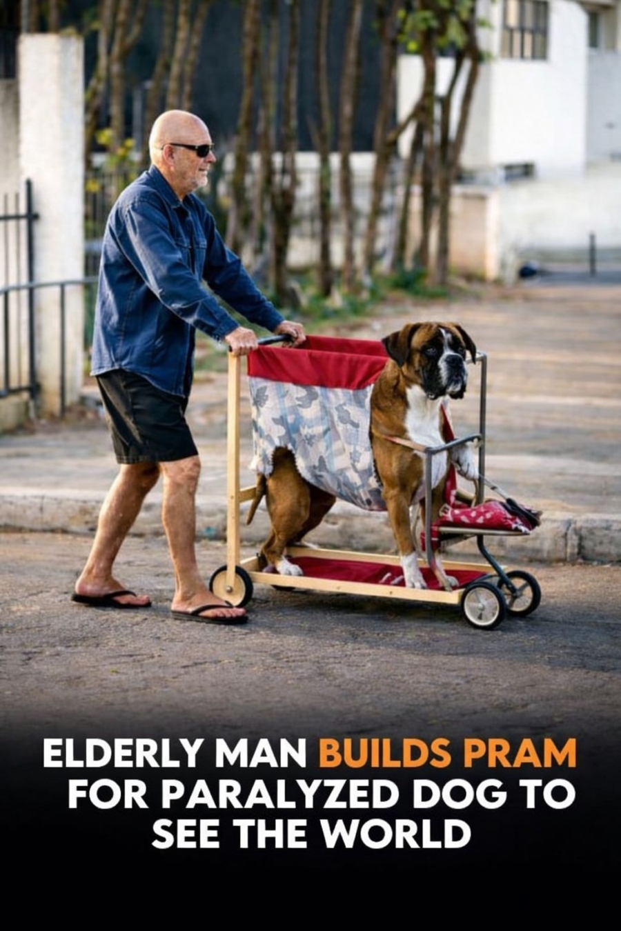 When his loyal companion became paralyzed and could no longer walk, he refused to accept that their days of exploring together were over. Instead, he built a handmade pram—carefully designed so his dog could sit comfortably while being pushed through parks, sidewalks, and quiet streets.