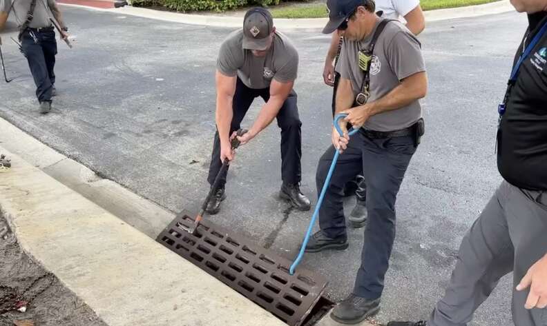 The determined first responders lifted the heavy grate cover, and Gomez descended into the catch basin using a ladder.