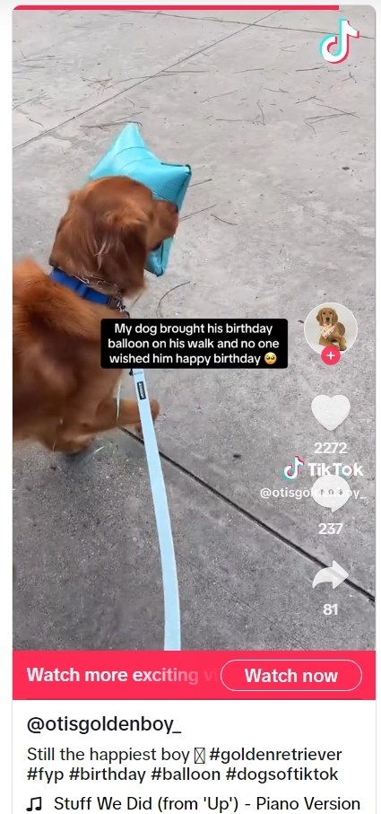 • Otis the Golden Retriever’s favorite birthday gift was a big teal balloon.