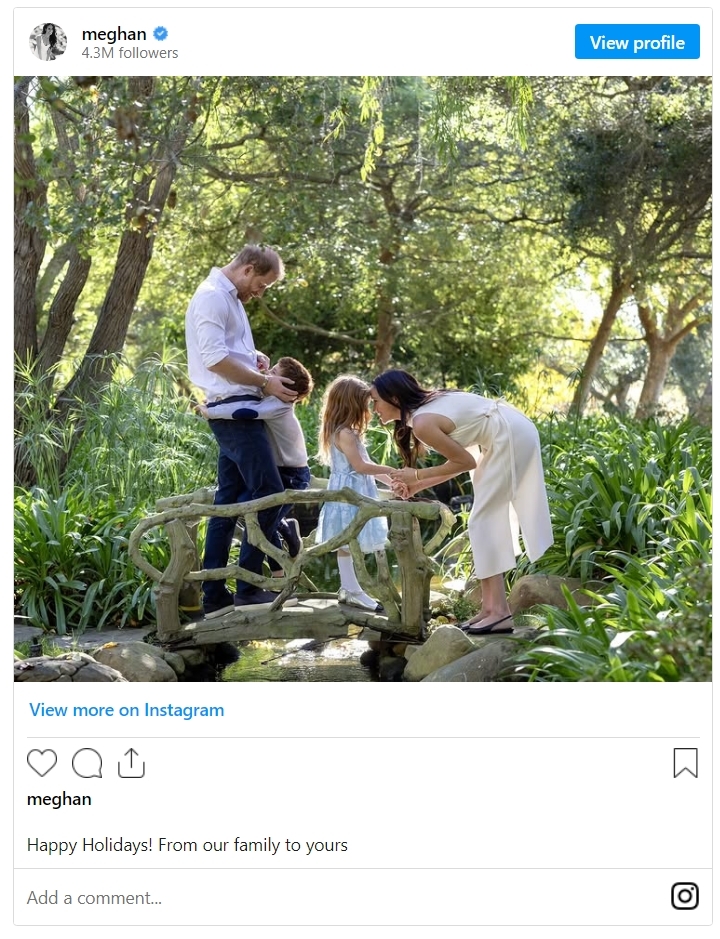 “Happy Holidays! From our family to yours,” Meghan wrote.