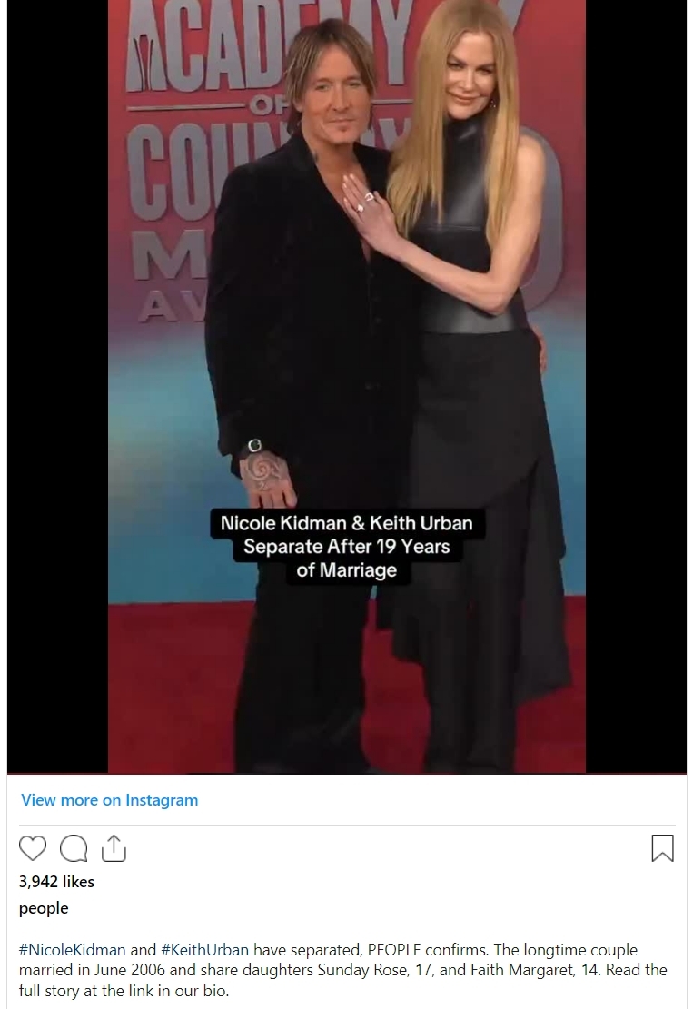 Fans of Nicole Kidman and Keith Urban were left shocked on Monday when it emerged they had split after 19 years of marriage.