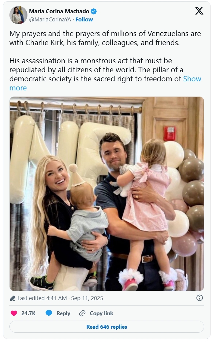 “She is receiving the Nobel Peace Prize for her tireless work promoting democratic rights for the people of Venezuela, and for her struggle to achieve a just and peaceful transition from dictatorship to democracy,” the committee stated in their announcement of the 2025 winner.