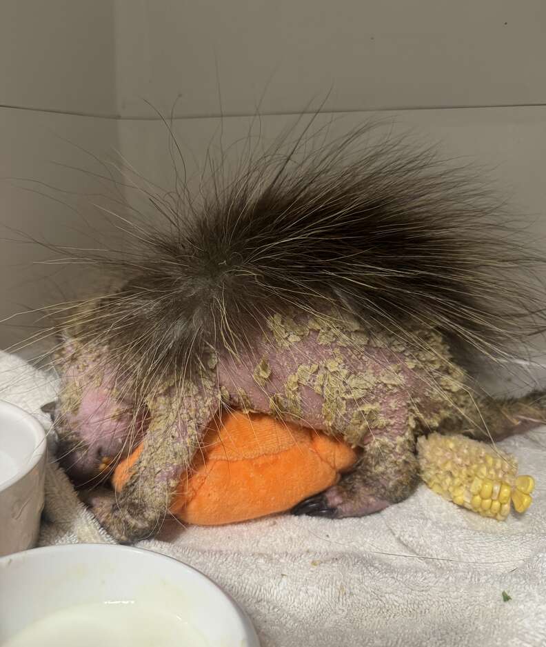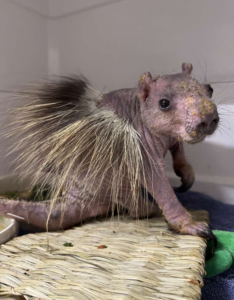 “This was the most intense case of mange and ringworm we have ever seen on a young porcupine,” Kathryn Mattison, operations manager at AWR, told The Dodo. “Staff immediately started medications and fluids.”