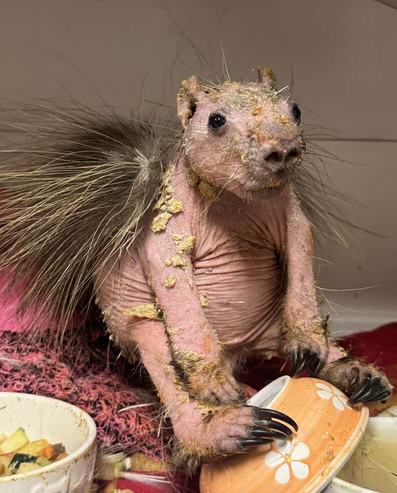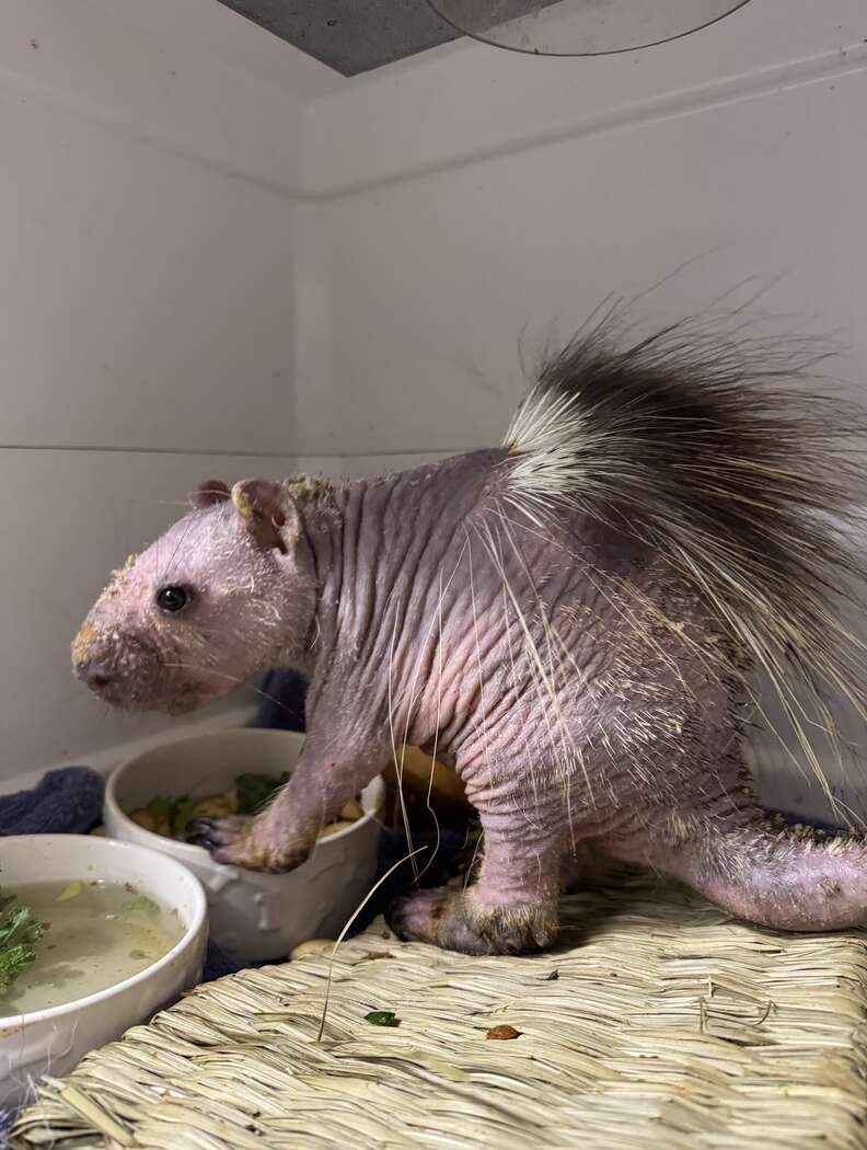“He’s truly a character,” Mattison said. “This little porcupine came in so weak and scared, and has flourished into quite the ham! Being so bare, he still remains in a large incubator to help him stay warm, but he runs the show in there. He likes to push his food and formula bowls over and kick back with his feet up.”
