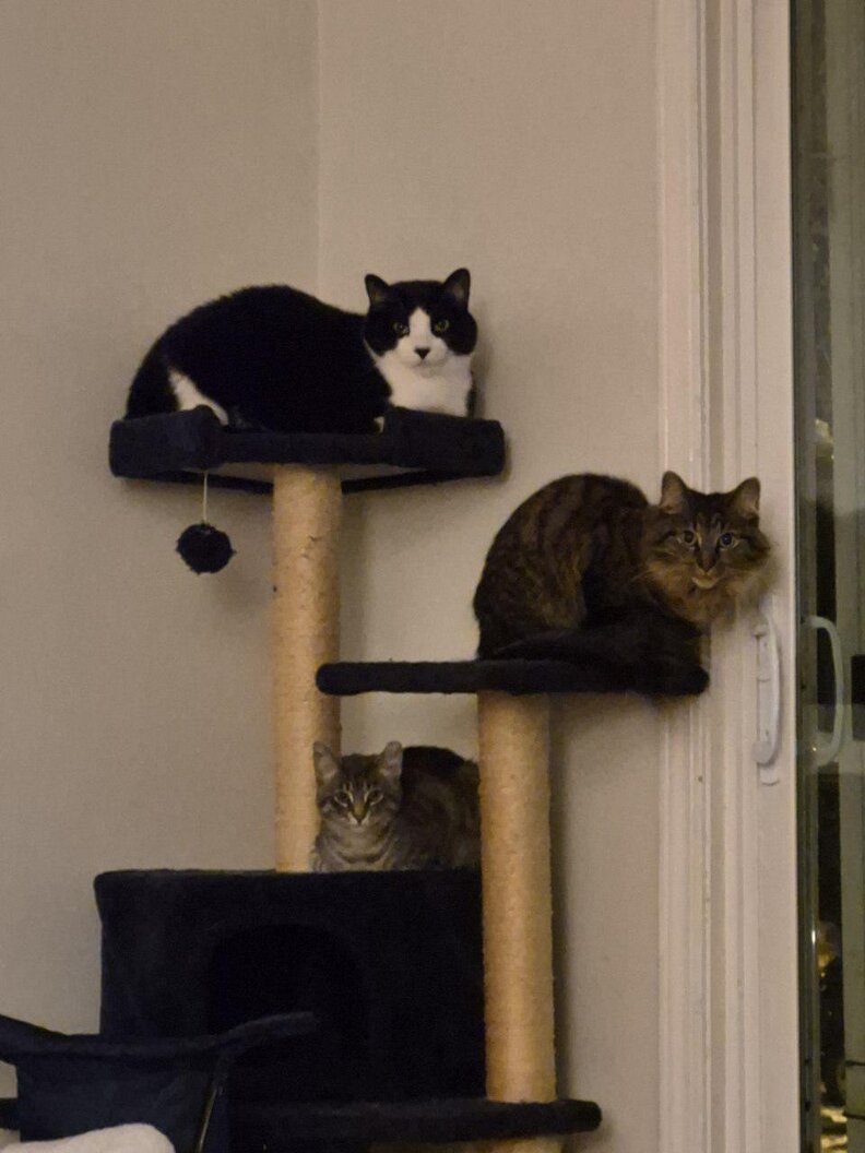 Francis turned his bathroom into a cozy sanctuary for the cat, whom he nicknamed Little One/Stinky, while waiting for the fleas to subside. But Stinky’s quarantine wasn’t just for health reasons — it also gave his new siblings, Lilah and Ming, space to get to know him.