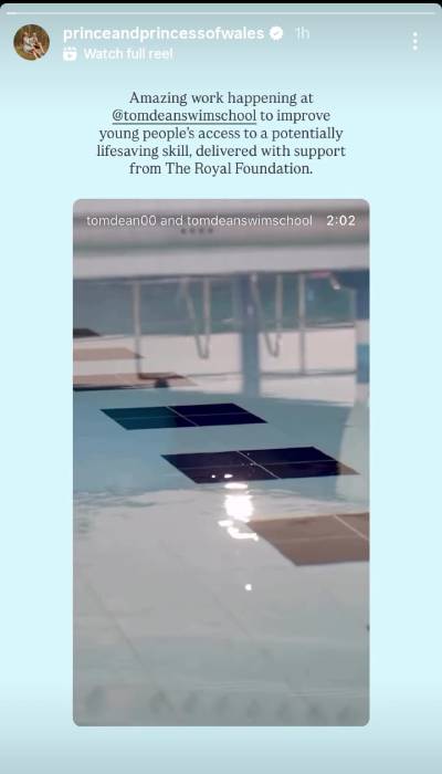 “Amazing work happening at @tomdeanswimschool to improve young people’s access to a potentially lifesaving skill, delivered with support from The Royal Foundation.”