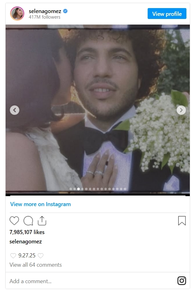 The long-time couple made it official with their Saturday nuptials. Gomez posted on Instagram to commemorate the day, sharing polaroids and film footage from the wedding.
