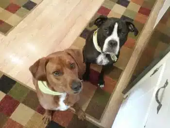 In the heartbreaking image, Kala, a brown hound mix, wrapped her paws tightly around her best friend, Keira, a boxer mix. Her eyes were full of fear, silently pleading for help. They were bonded, terrified, and out of time.