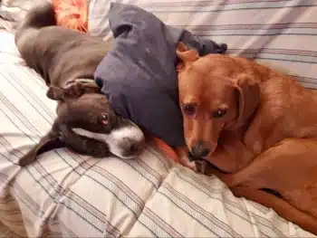 Over time, both dogs recovered physically and emotionally. They continued to live together in their foster home while Angels Among Us Pet Rescue searched for a family willing to adopt them as a pair.