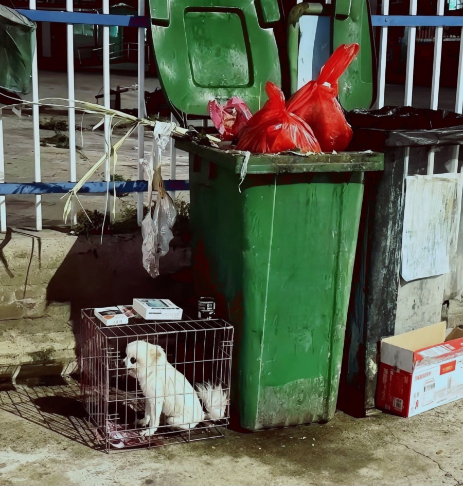 Tom, a small, fluffy white Poodle-mix, had been meticulously placed—not gently put down, but placed—in a rusty wire kennel beside two massive green commercial dumpsters. The sight, captured in a viral photograph, was one of abject cruelty: a pristine, innocent creature discarded like the garbage bags overflowing around him.