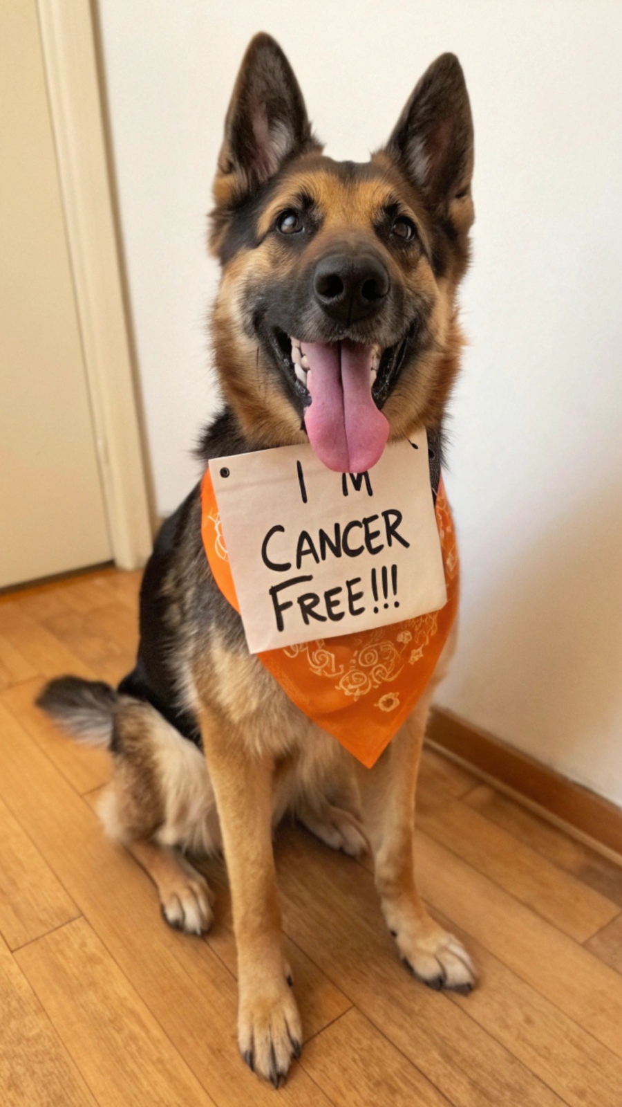 After ten challenging months, the incredible news finally came. The scans were clear: Rex was in full remission! He had beaten the aggressive cancer. Rex, though slightly scarred and monitored carefully, was once again running, playing, and standing tall, a testament to his grit and his family’s dedication.