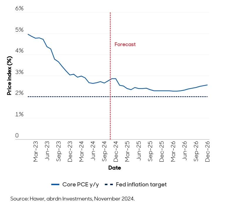 Chart 1. US core PCE set to remain stubbornly above target in the face of an inflationary policy agenda