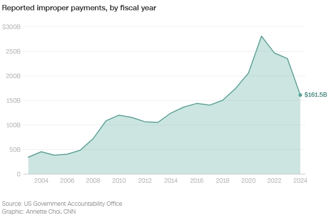 Federal improper payments totaled about $162 billion in fiscal year 2024
