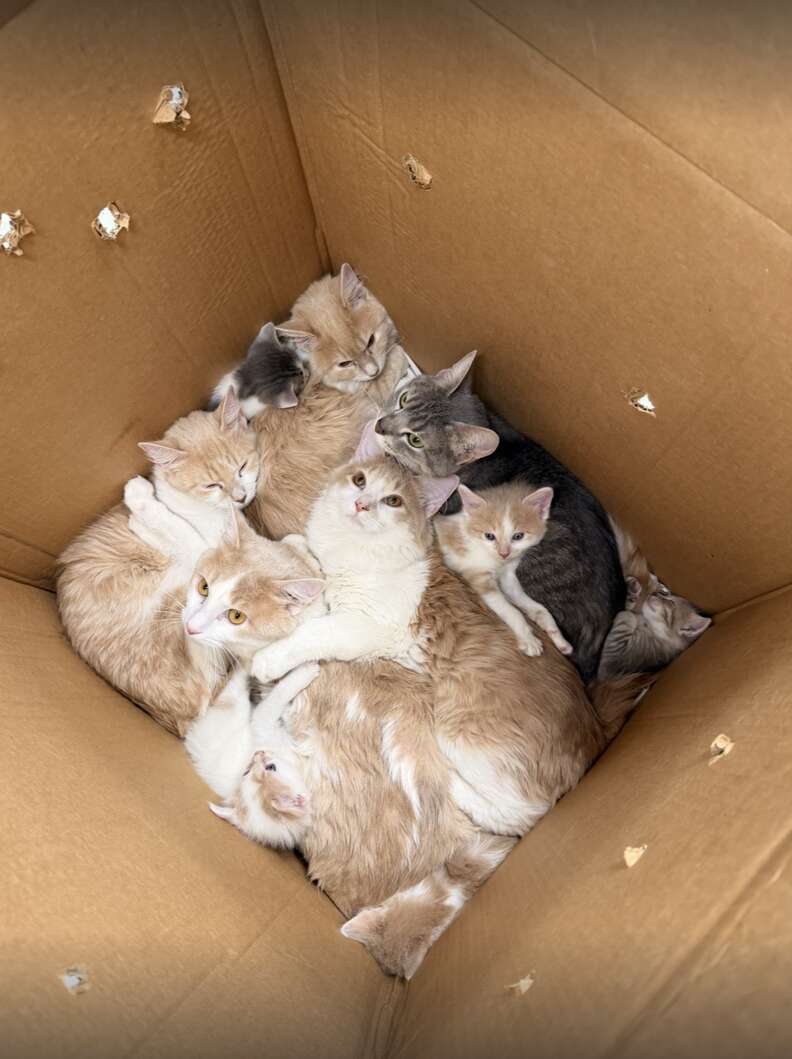 When the rescuers opened up the box and saw who was inside, they were shocked. There weren’t two cats inside — there were 10 of them.